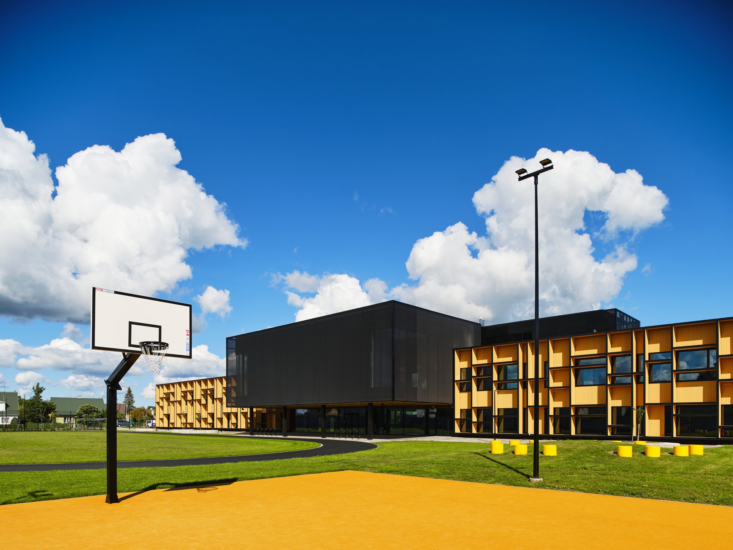“Käsitletava kooli kinnistu unikaalne asetus loob olukorra, kus kooli peauksele lähenetakse nii põhjast kui lõunast. Hoone plaanilahendus on sümmeetriline – kaks võrdset töötamise tiiba ning neid siduv keskne ühisala. Et hajutada avatud funktsioone kooli peale laiali, on aula viidud teisele korrusele. Selline liigutus loob ühisala – kooli “südame” – mõlemale korrusele. Kogu keskset ala ühendab herilaspesamotiivis peatrepp. Analoogne vormimotiiv kordub väikevormides nii interjööris kui eksterjööris ning tasakaalustab sirgjoonelist plaanilahendust pehmemate joontega, lisades mängulisust ja vaheldusrikkust.”