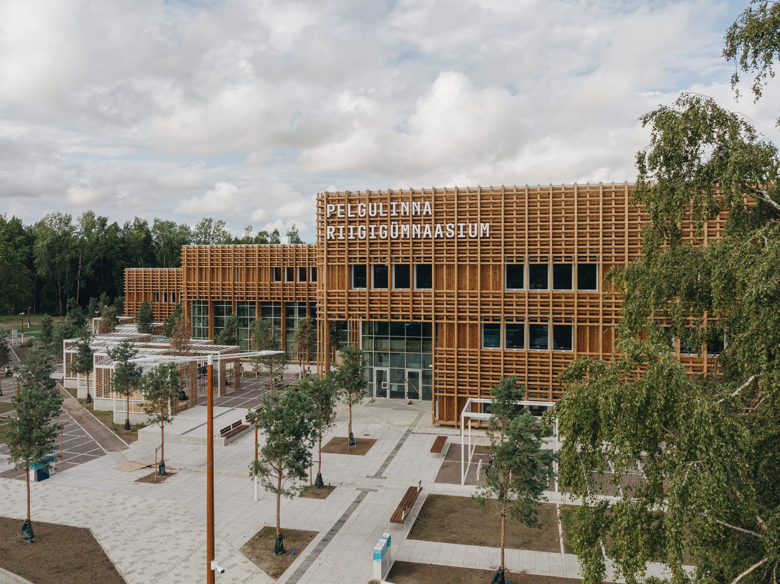 “Uus gümnaasiumihoone koosneb selgetest ja minimalistlikest mahtudest, mille kõrgus langeb linna poolt parkmetsa poole, sulatades hooned seeläbi maastikku. Hoonet ümbritseb varieeruv ja sopistatud tegevusmaastik. Linnapoolne väliala on tihedama programmiga, hajudes sujuvalt parkmetsaks. Koolihoone avalikud ruumid on paigutatud hoone välisperimeetrisse, ida- ja lõunaküljele – selliselt saavad ruumid alati hea päikesevalguse.”
