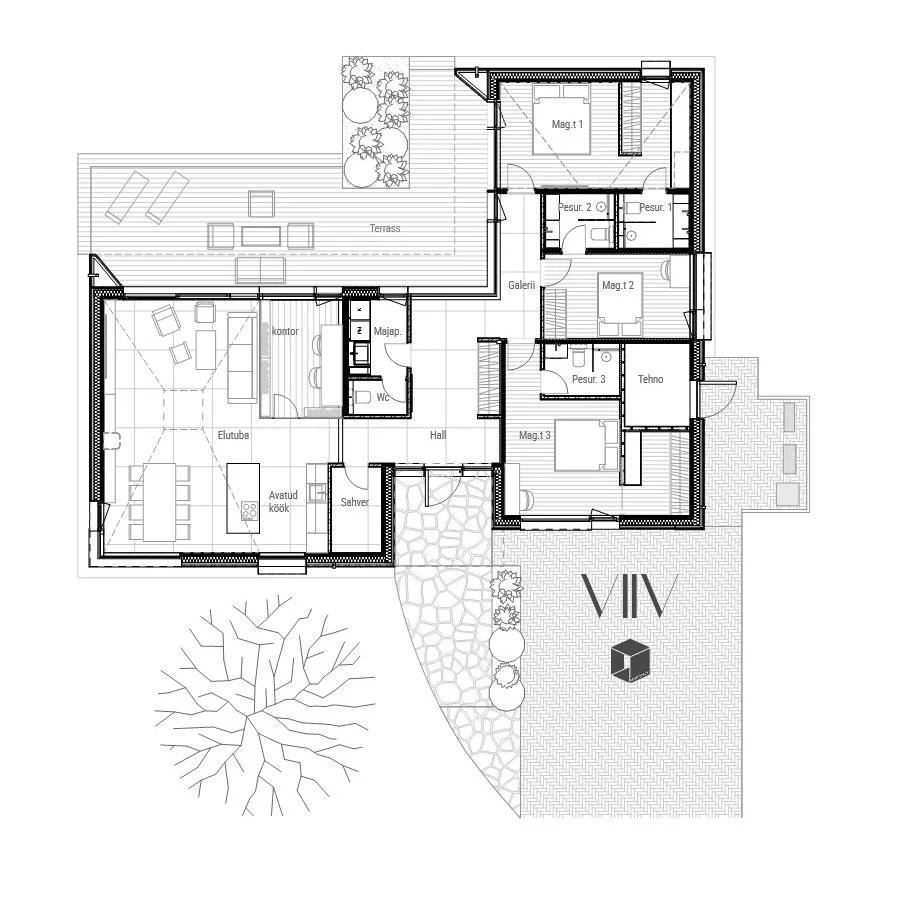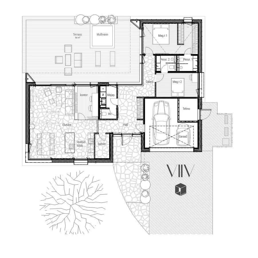 VIIV maja ühendab oma ajatu vormikeelega minimalistliku arhitektuuri ja tänapäevase ruumiplaneeringu. Magamistoad ja garaaž hoone ühes osas ning sotsiaalne ja energilisem pool teises tiivas. Hoone on tänavapoolt taotluslikult kinnisem, kuid avaneb oma L-kujulise põhiplaaniga terrassi ja hoovi suunas. VIIV maja on 160m2 netopinnaga kompaktne elamu, mille lihtne kuju ja plaanilahendus annavad talle suurema paindlikkuse. Hoone on kavandatud CLT kandva konstruktsiooniga, millele saab lihtsasti ka tubade mooduleid juurde lisada või muuta nende tüpoloogiat. Näiteks muuta kodukontor hoopis saunakompleksiks või garaaži asemele täiendav eluruum. Arhitektuuri ilmestavad kelpkatused võimaldavad tekitada avarust, kus me seda hindame, ning kokku hoida seal, kus täiendavat õhu kütmist ei vaja. Ajatud fassaadimaterjalid koos puiduse interjööriga täiendavad teineteist ning pakuvad suurepärast keskkonda elamiseks, puhkamiseks või töö tegemiseks. Hoone on projekteerinud arhitekt Kirsto Põlluaas (Makespace OÜ).